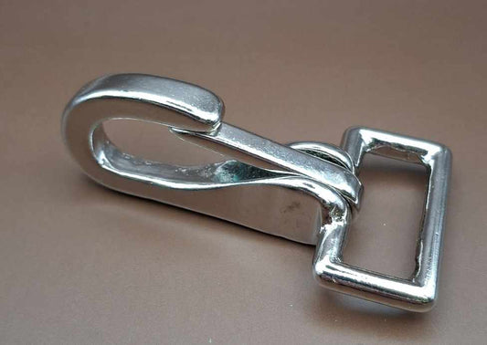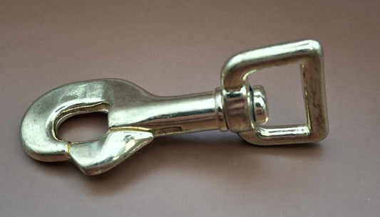 Gurtkarabiner in silberfarben (Zinkdruckguss, Messing, vernickelt) für Gurte / Riemen bis 18 mm